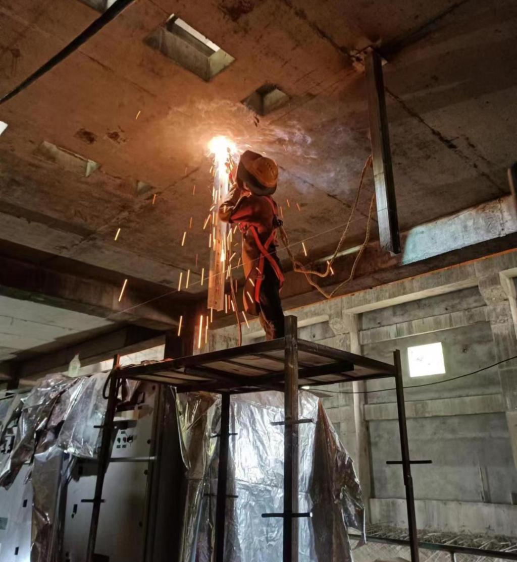 ◆东方国际尼泊尔山涧水电项目职工正在进行电缆桥架安装工作