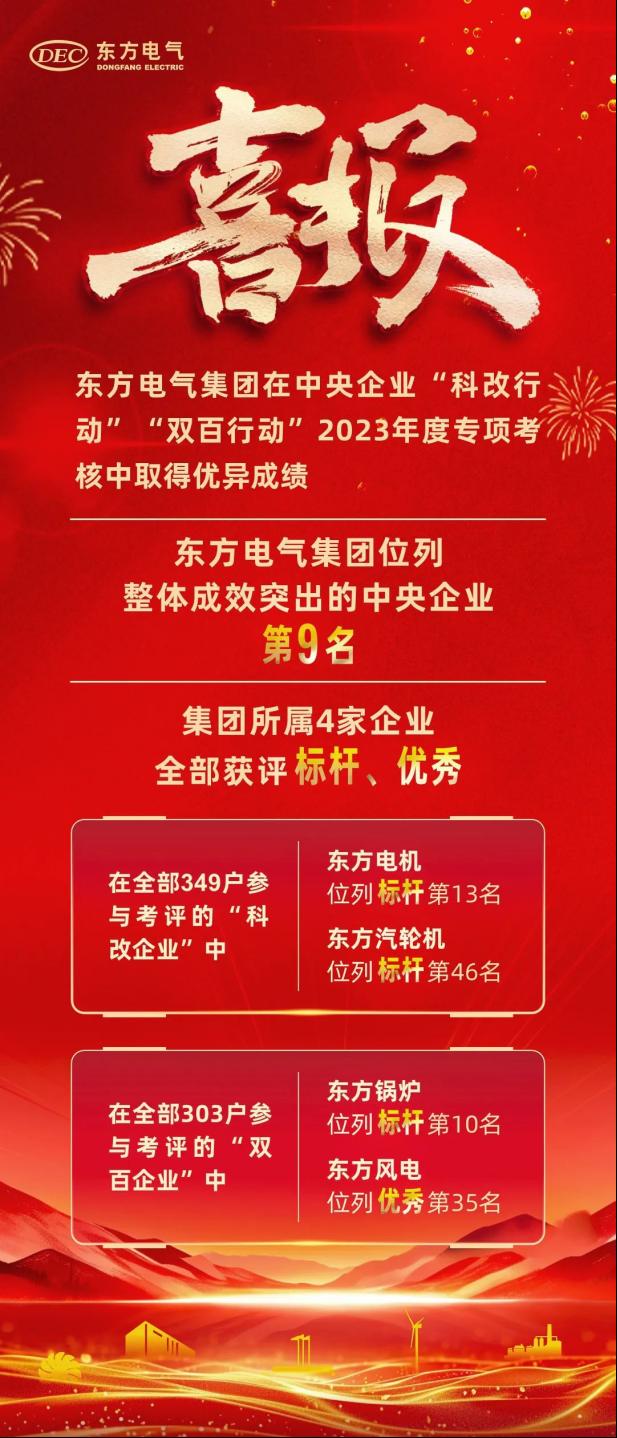 近本网讯 日,国务院国资委发布中央企业“科改行动”“双百行动”2023年度专项考核结果,优发国际集团在推进“科改行动”“双百行动”整体成效突出的34家中央企业中位列第9名。优发国际集团所属4家企业均取得优异成绩,其中东方电机、东方汽轮机分别位列“科改行动”标杆企业第13名、标杆企业第46名,东方锅炉、东方风电分别位列“双百行动”标杆企业第10名、优秀企业第35名